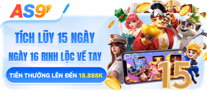 Tích lũy rinh lộc đang là sự kiện làm mưa làm gió tại 1AS9 , người chơi không cần chơi game, chỉ cần đăng nhập và điểm danh đầy đủ là có thể rinh ngay số tiền 18,888K tạ nhà cái, ngoài ra mỗi ngày mới, mỗi người chơi nhận thêm 1 vòng quay may mắn có giá trị từ 88k-188888K.